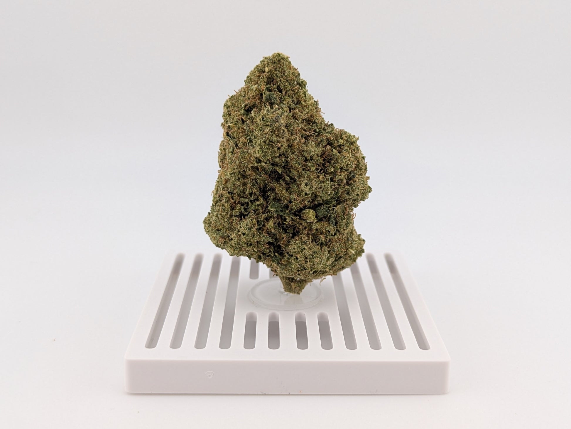 Rich in terpinolene, limonene, and caryophyllene, this strain will envelop you in its tropical and strangely refreshing aroma. As you get ready to grind up this sweet, citrus-smelling bud, you'll see bright-green colas with cartoon-purple sugar leaves poking out between the crystals. This sativa-dominant creation is just what you'd expect. As tokers tell it, it's uplifting and profoundly relaxing, with a long-lasting cerebral high.